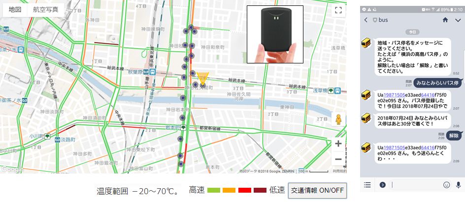 車両の位置把握・混雑状況などIoTによる管理からLINEを用いた情報配信なども。